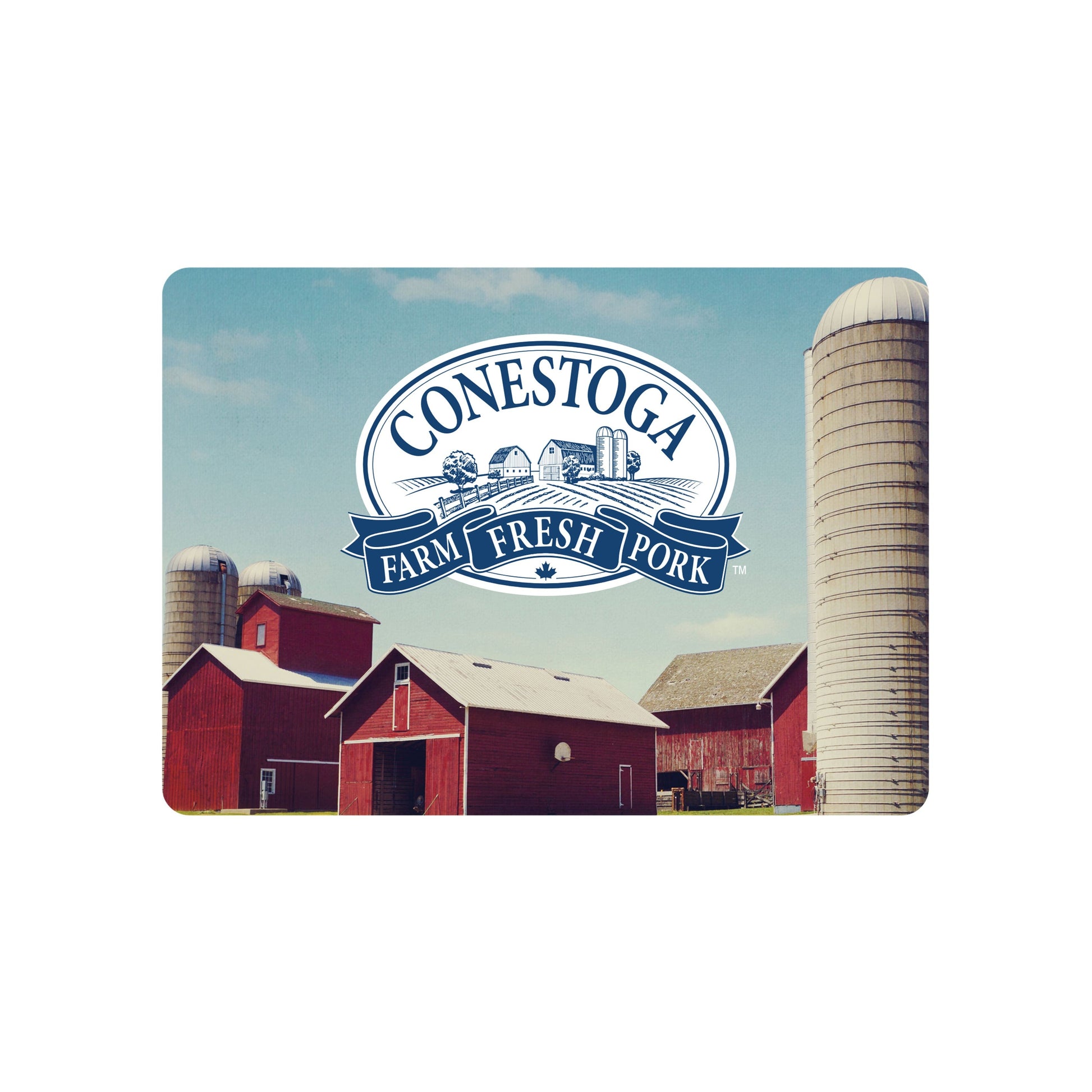 Poker-sized playing card with customized Conestoga Meats card backing design. Farm scene. Individually boxed.